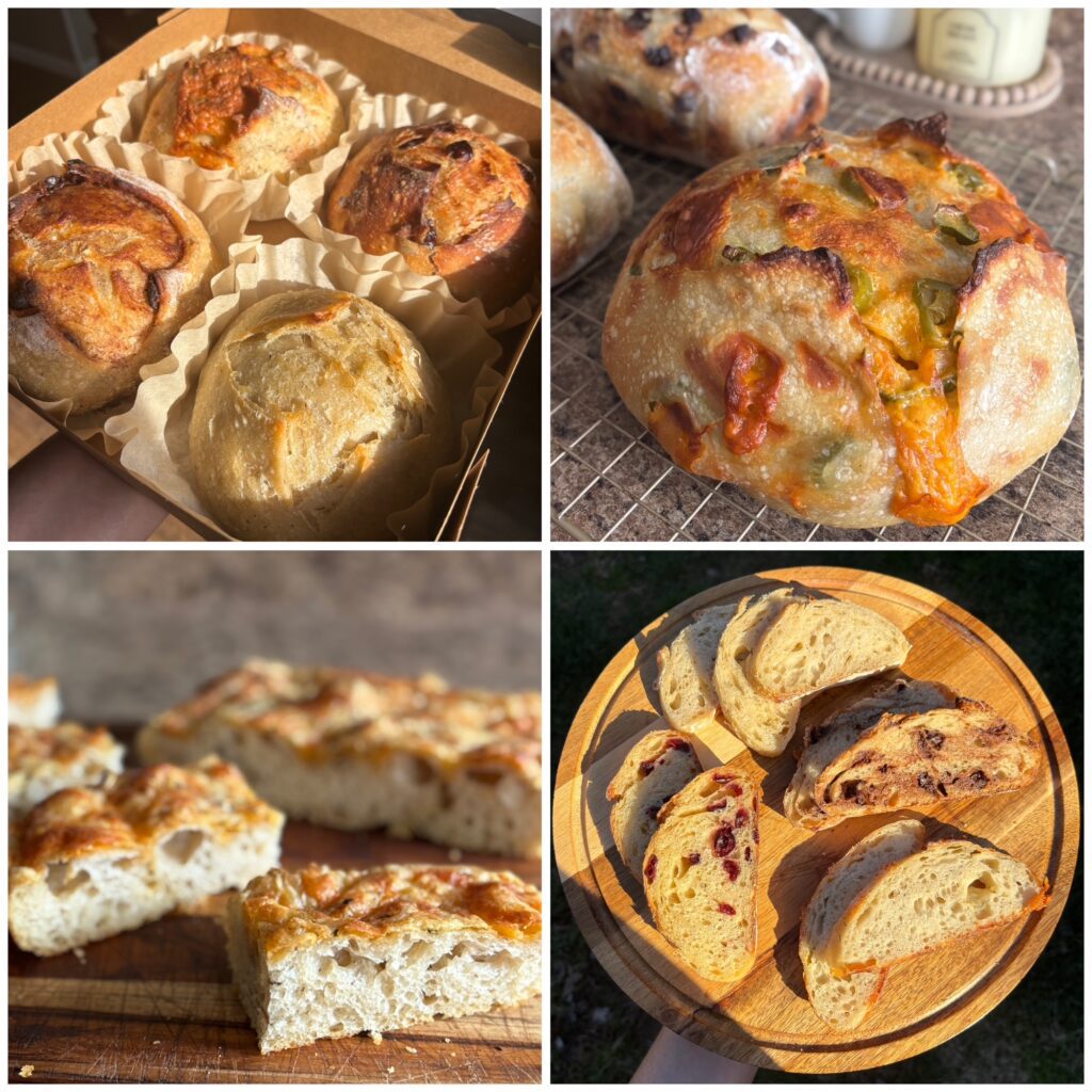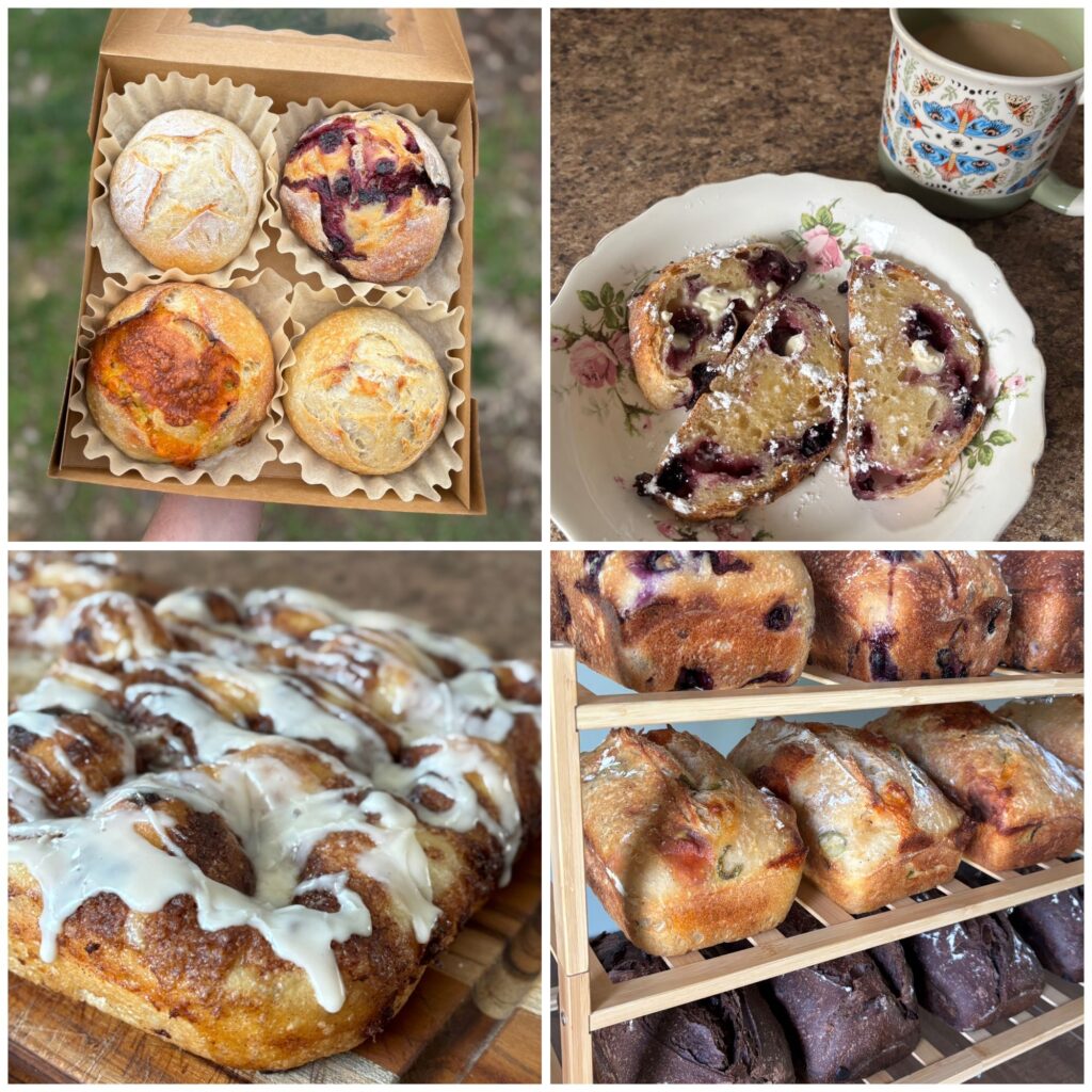 To order, please message us on Facebook or Instagram, or fill out our contact form and we will let you know when our next bread pickup day or market is and what flavors we are offering that day. Please note, payment is due when placing your preorder; we take Venmo, Zelle, and Cashapp.