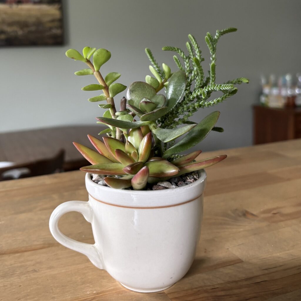 Bring a touch of nostalgia and greenery into your home with our mug planters! Each mug is thoughtfully thrifted, many with designs that evoke warm memories of mom’s or grandma’s kitchen. Paired with plants or succulents that complement their charm, these mug planters are both heartfelt and unique.