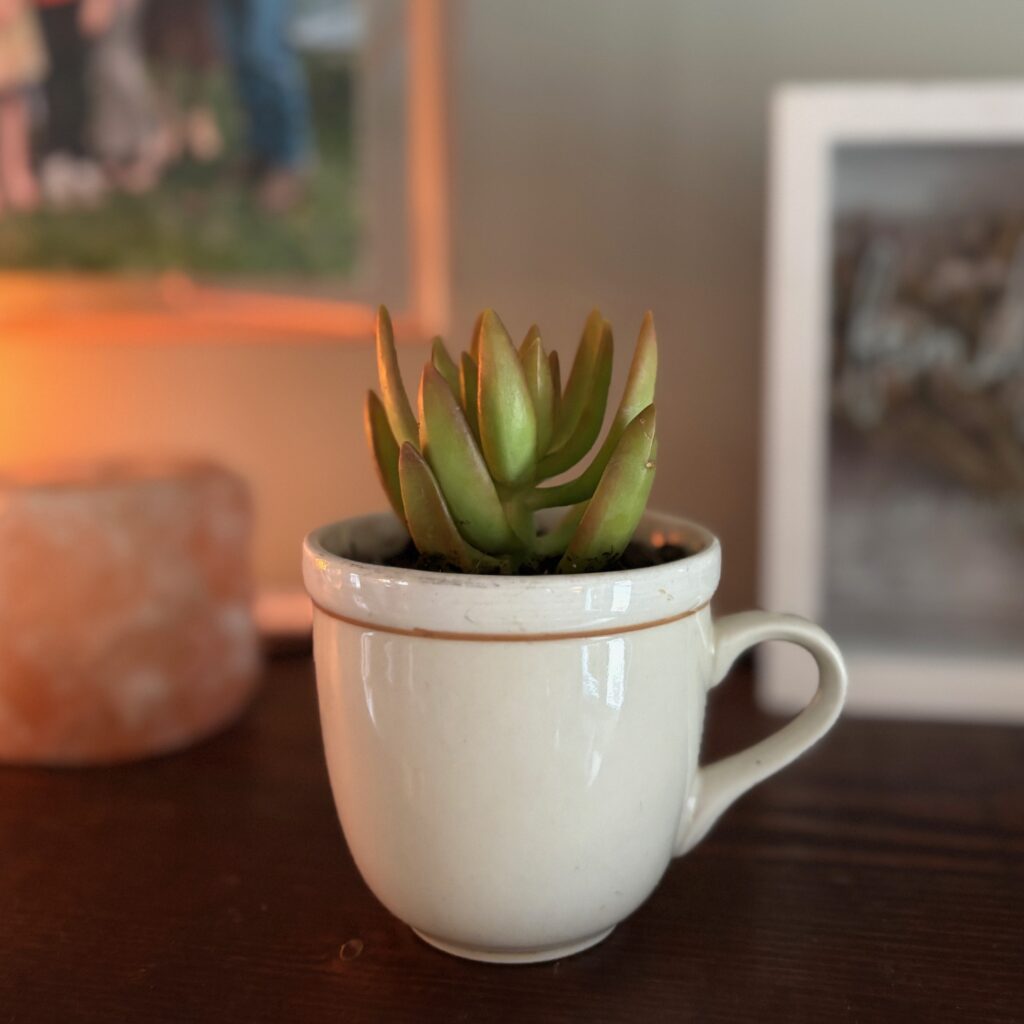 Bring a touch of greenery and nostalgia into your home with our mug planters. Each mug is thoughtfully thrifted and paired with the perfect plant to compliment it’s unique charm.