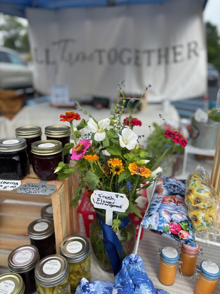 Be sure to stop by our farmer’s market booth, where our mom/mother-in-law, Angie, joins us and offers a variety of seasonal produce, plant starts, canned jams and jellies, salves, 100% grass-fed beef tallow, and more.