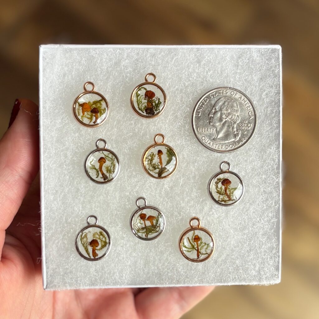Explore one-of-a-kind handmade jewelry made with real dried flowers, leaves, mushrooms, moss, and gemstones, all preserved in a clear resin. Every piece by The Purple Fern is designed with care and captures a tiny glimpse into the natural world that you can take with you wherever you go.